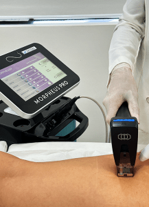 São ondas acústicas que estimulam a circulação, produção de colágeno e regeneração dos tecidos. Melhora o aspecto de “casca de laranja” provocado pela celulite, pois atua nas múltiplas camadas de tecidos da pele, eliminando a superfície irregular. As sessões são indolores e não invasivas e o resultado é a redução das celulites e melhora da fibrose.
